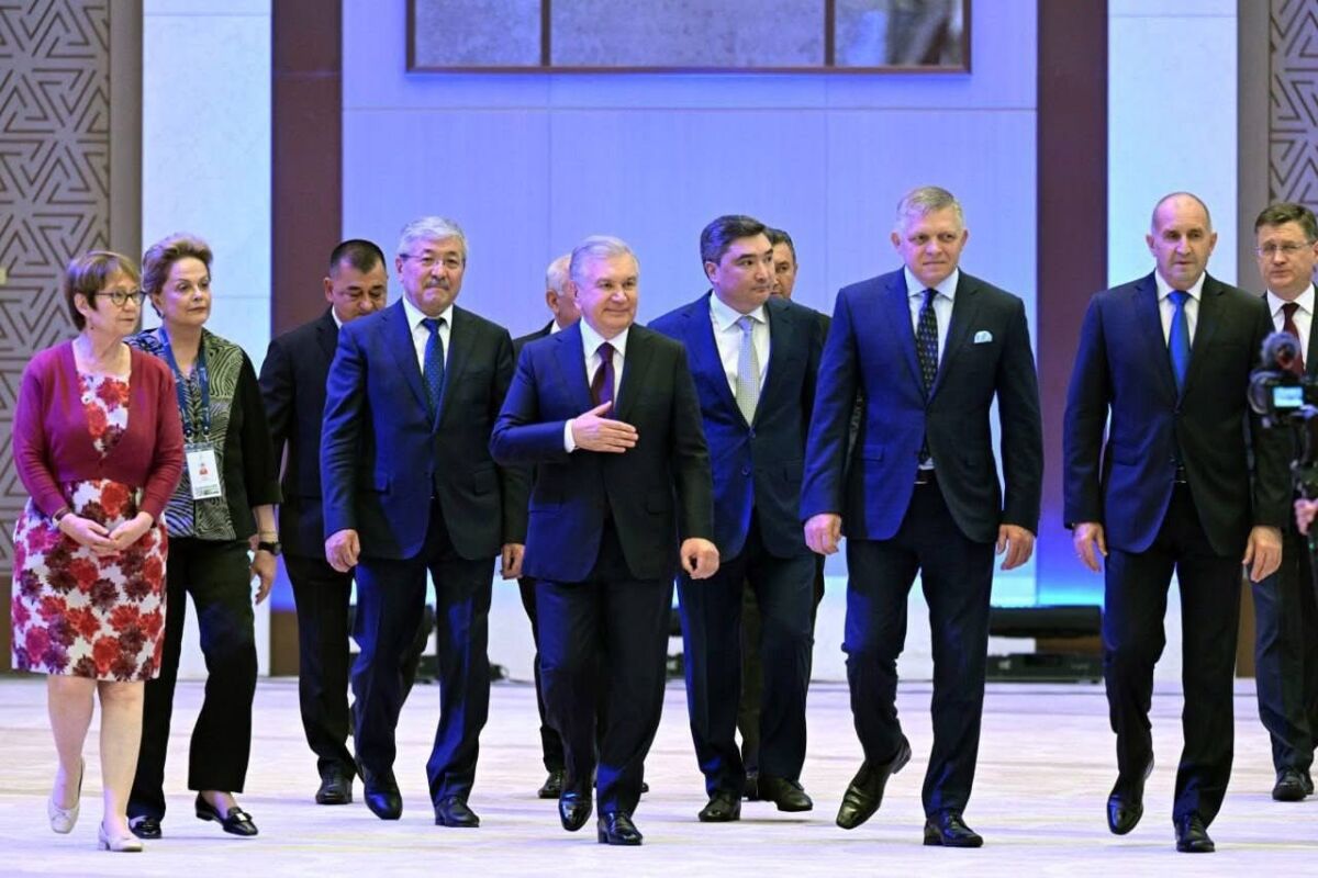 На снимката президента Румен Радев и премиера на Словакия Роберт Фицо на форум в Узбекистан, близък партньор на Русия и Кремъл