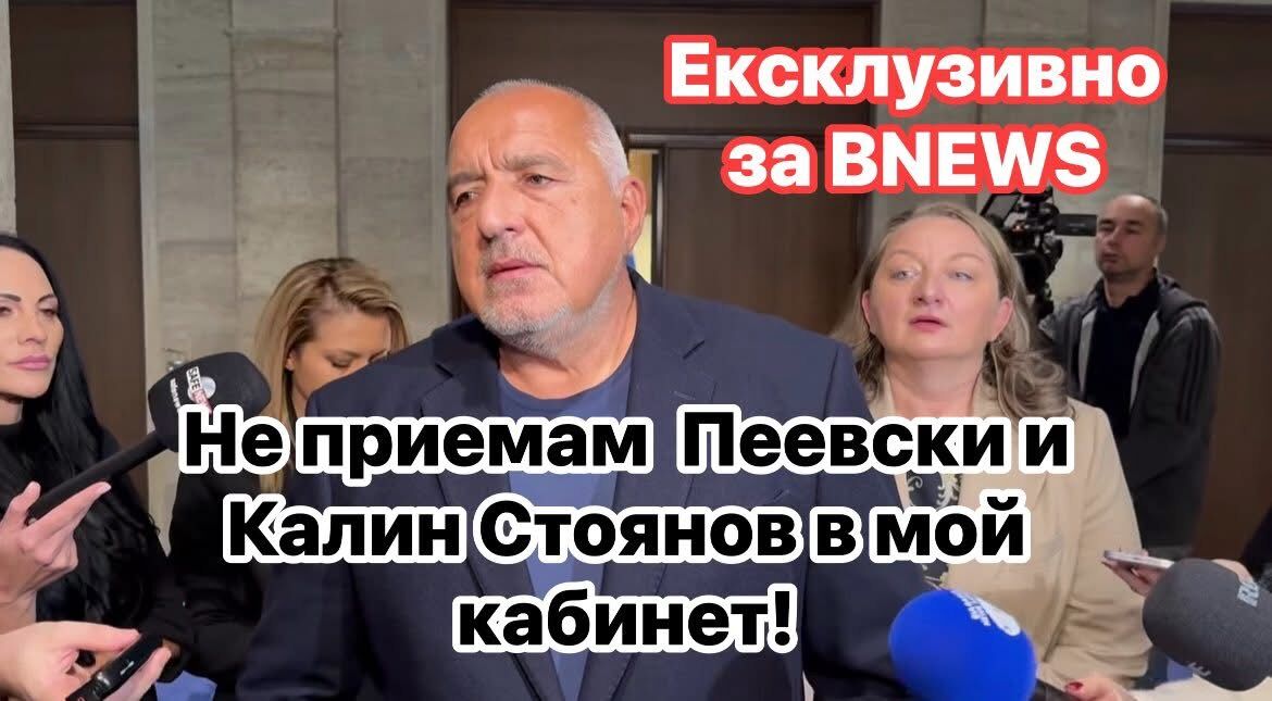 Бойко Борисов коментира екслузивно пред най-четената медия в социалните мрежи BNEWS с 2 М четения дневно, че няма да приеме Делян Пеевски и Калин Стоянов в кабинет, в който той е премиер.
